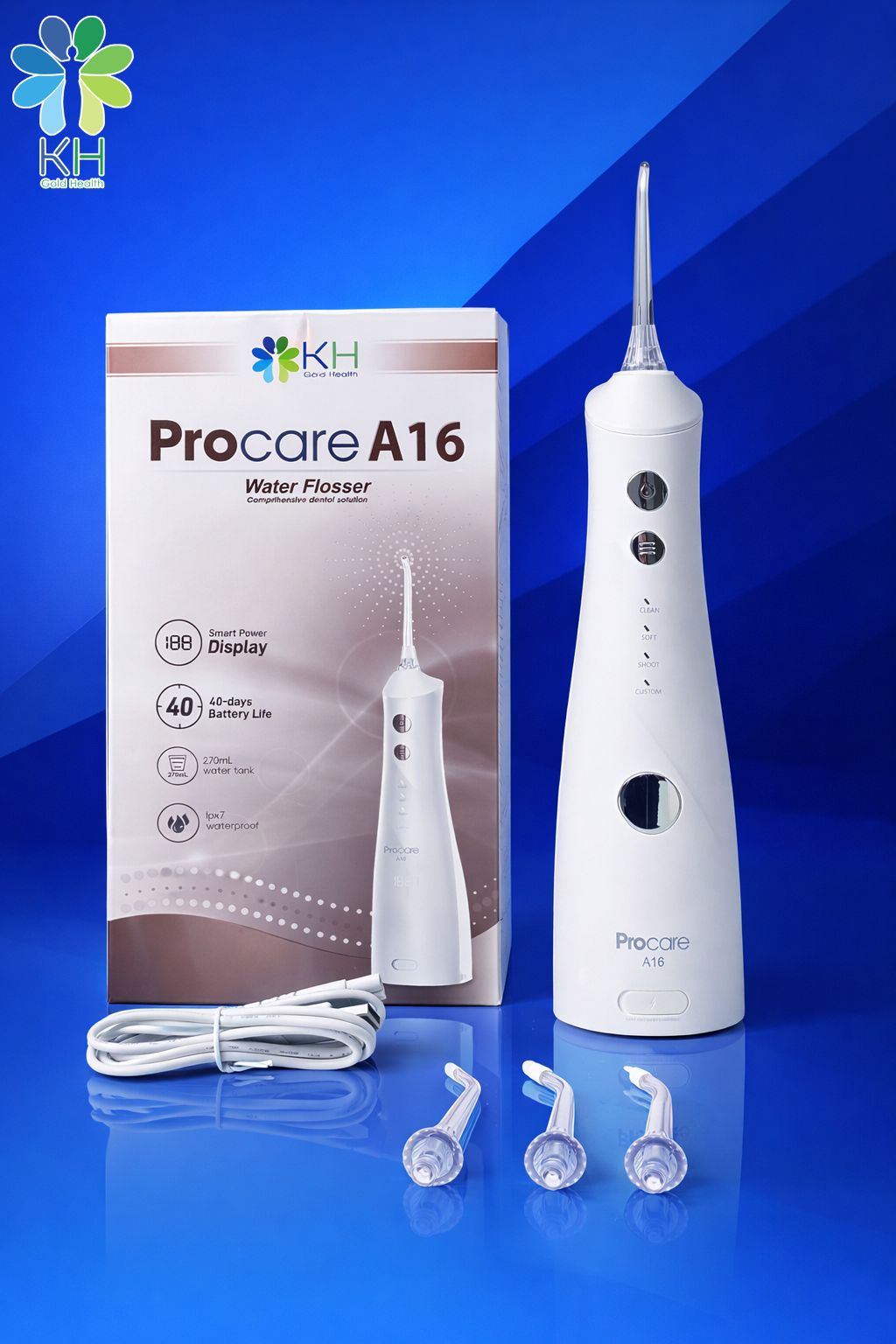 Nhờ áp lực tia nước kết hợp nhịp rung, Procare A16 giúp loại bỏ mảng bám và vi khuẩn gây sâu răng, hôi miệng, đồng thời hỗ trợ phòng ngừa viêm lợi, tụt lợi và giảm chảy máu chân răng. Tia nước có tác dụng massage nướu nhẹ nhàng, kích thích tuần hoàn máu, giúp giảm sưng viêm và mang lại cảm giác sạch sẽ, dễ chịu và thoải mái cho khoang miệng sau mỗi lần sử dụng.